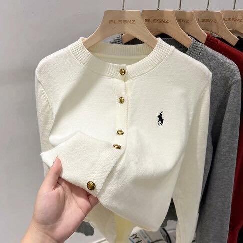 說到秋冬穿搭,最不可或缺的就是那件能隨時給予妳溫暖,又充滿細節巧思的針織開衫。這款經典的小馬標誌金釦開衫,正是我們想推薦給妳的秋冬百搭首選。