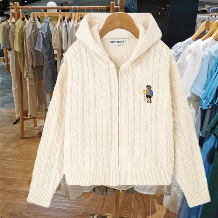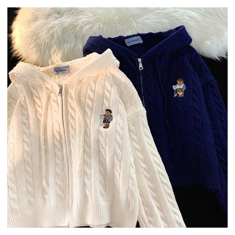 韓國小熊連帽麻花開衫毛衣(加厚款)