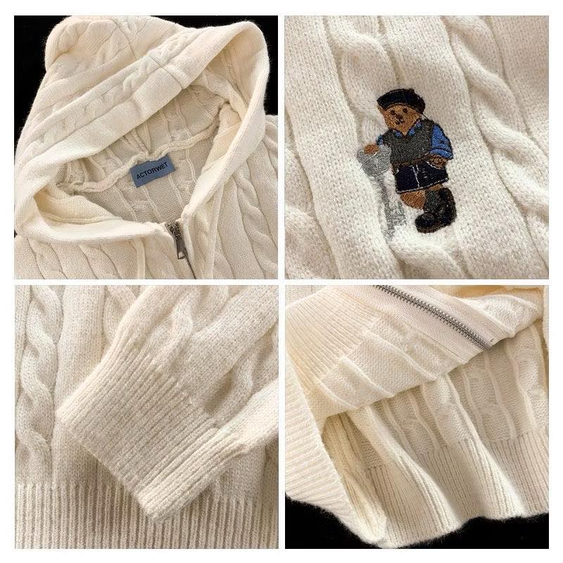 秋冬必備!韓國小熊連帽麻花開衫毛衣(加厚款)