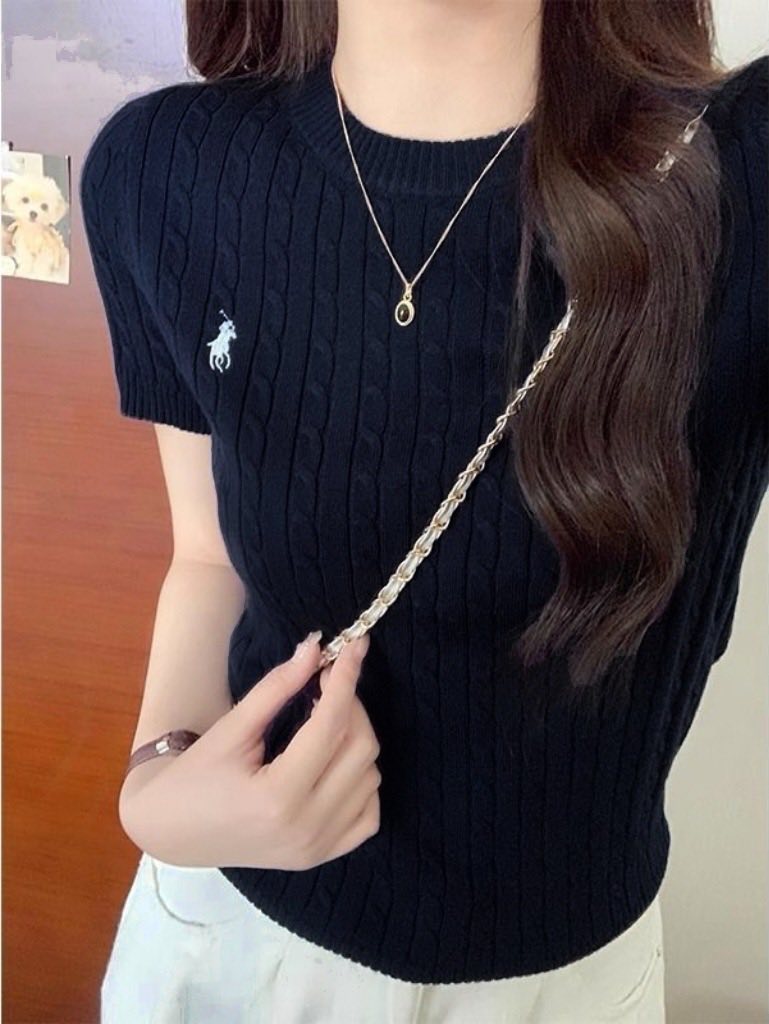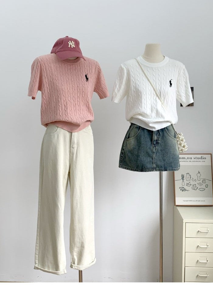 麻花針織短袖|軟糯親膚小馬刺繡