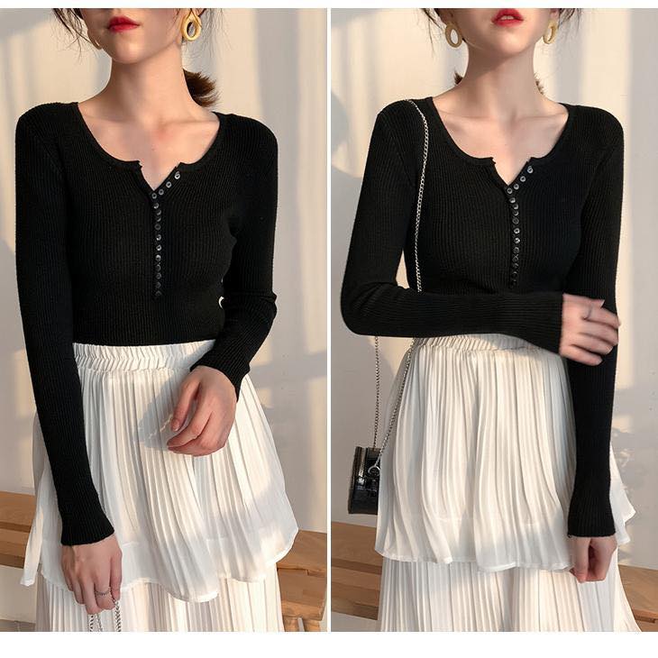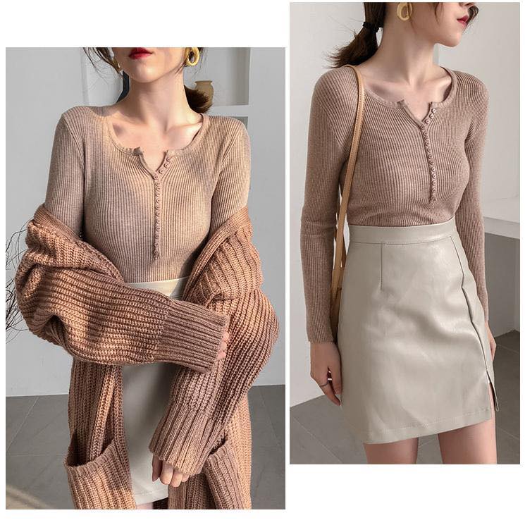 簡約百搭!日本心機修身內搭排釦針織上衣,8色可選,打造你的時尚風格