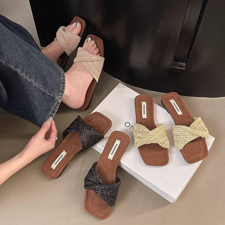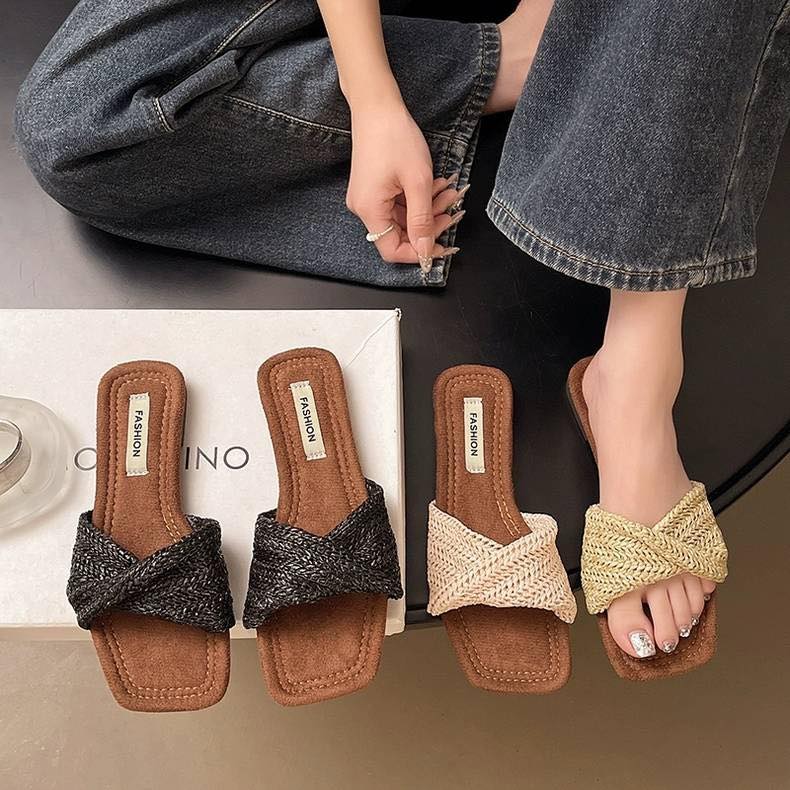 正韓質感 😍東大門熱銷NO.1✨扭結編織平底涼拖鞋 穿出慵懶韓系小姐姐氣質