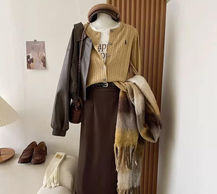 📚 學院俏皮風:針織開衫 + 百褶裙 + 長筒襪 + 馬丁靴,減齡又活力!