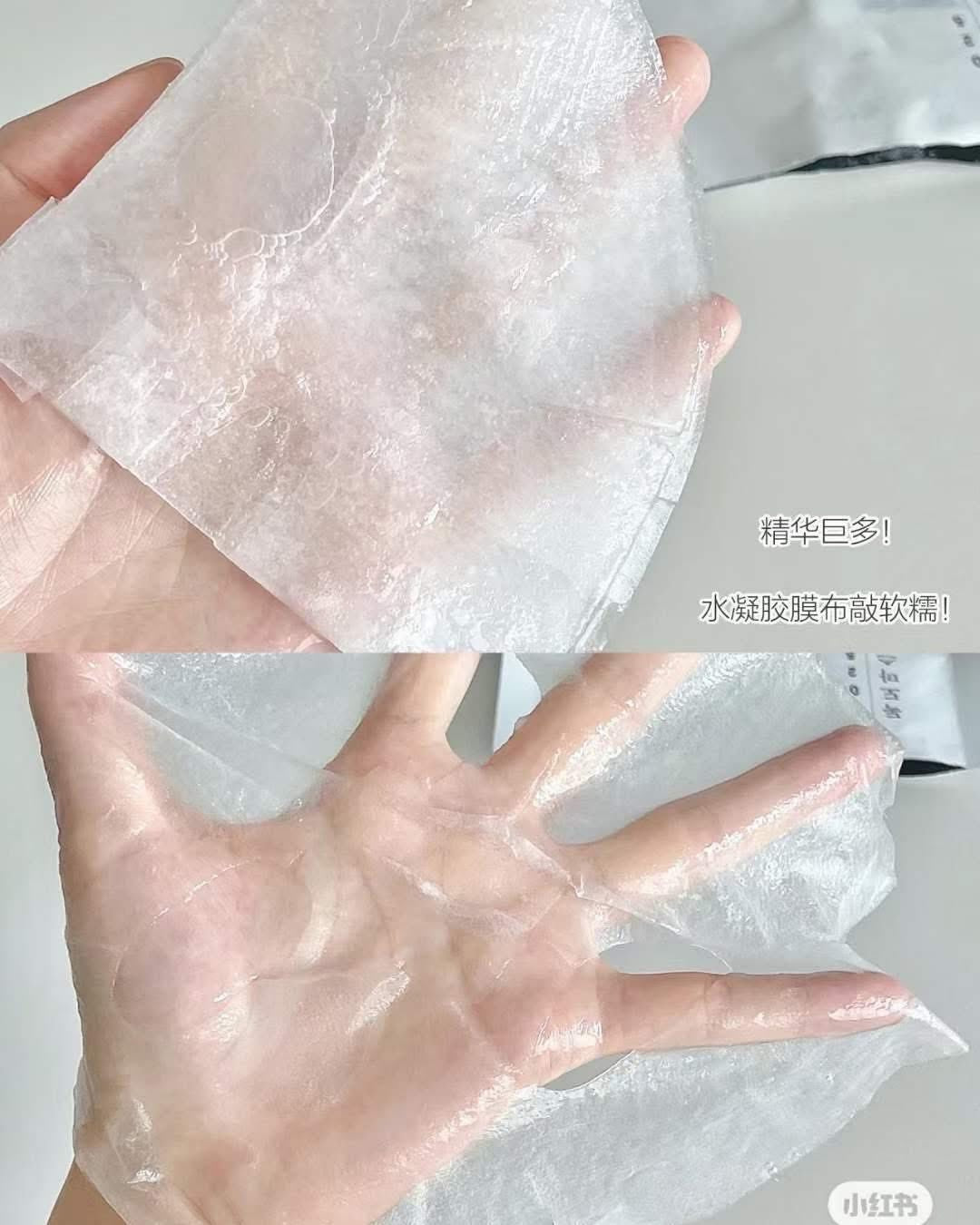 冰絲水凝膜很輕薄,上臉超貼服,能把30ml的精華吸住