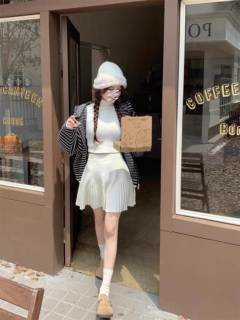 高腰針織百褶裙