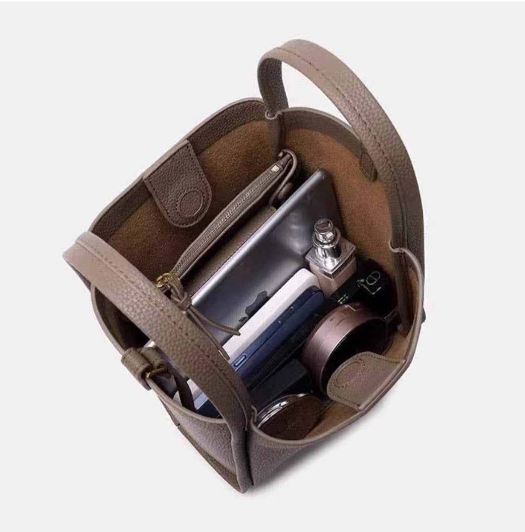 質感Songmont 真皮菜籃子水桶包+附贈一個 獨立小錢包(雙層設計)